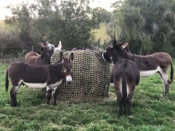 Donkeys absolutely love their hay and can be quite enthusiastic eaters, often pulling out and trampling more than they consume. Using a GutzBusta Slow Feed Hay Net helps slow their intake, keeps hay contained, and greatly reduces waste.