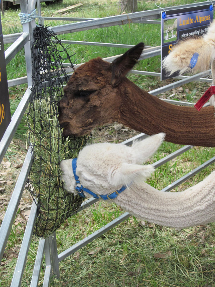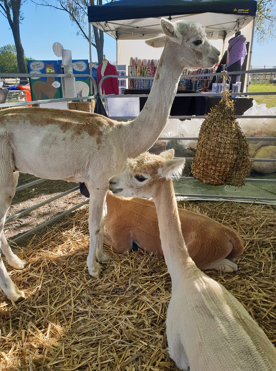 The owners of Lualto Alpacas kindly let us trial our nets with their livestock at the 2013 Murrumbateman Field Days. They were impressed by many factors, namely that the Alpacas were kept amused for a long time and also that they were not able to kick up and carry the hay around and then sit on it and use it as a toilet. Great to save on hay wastage.