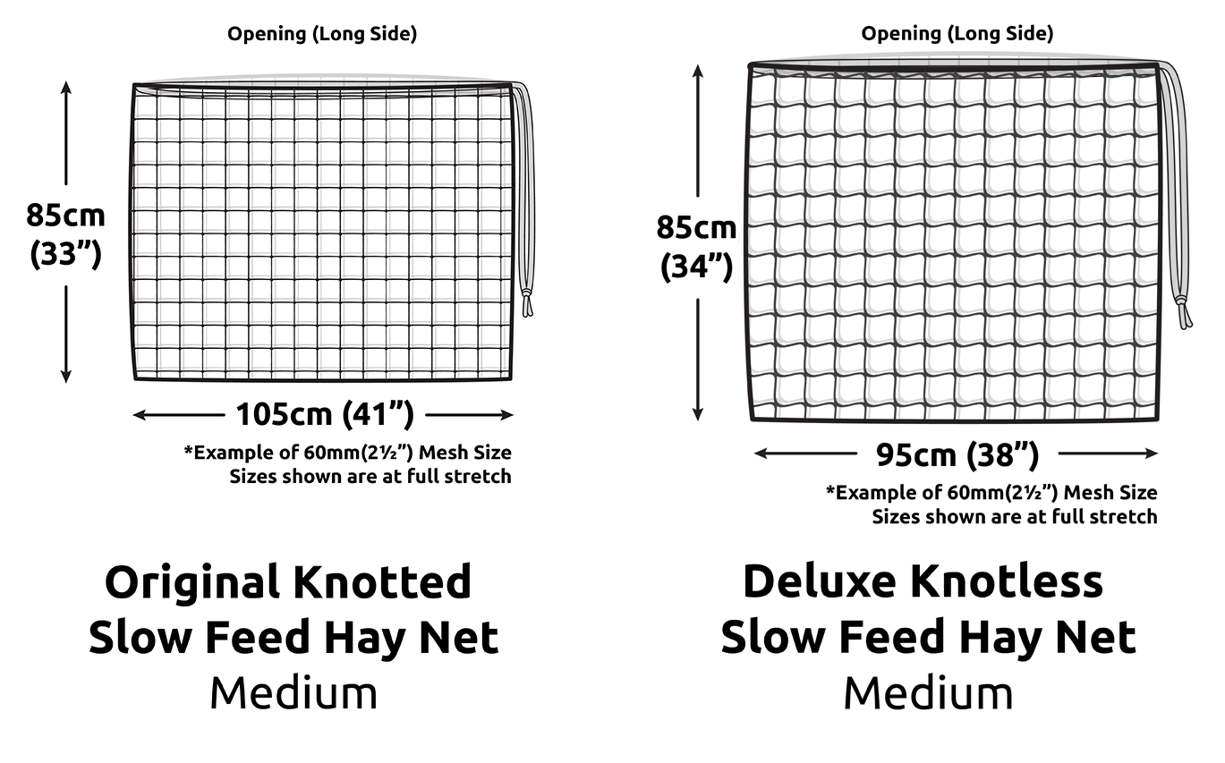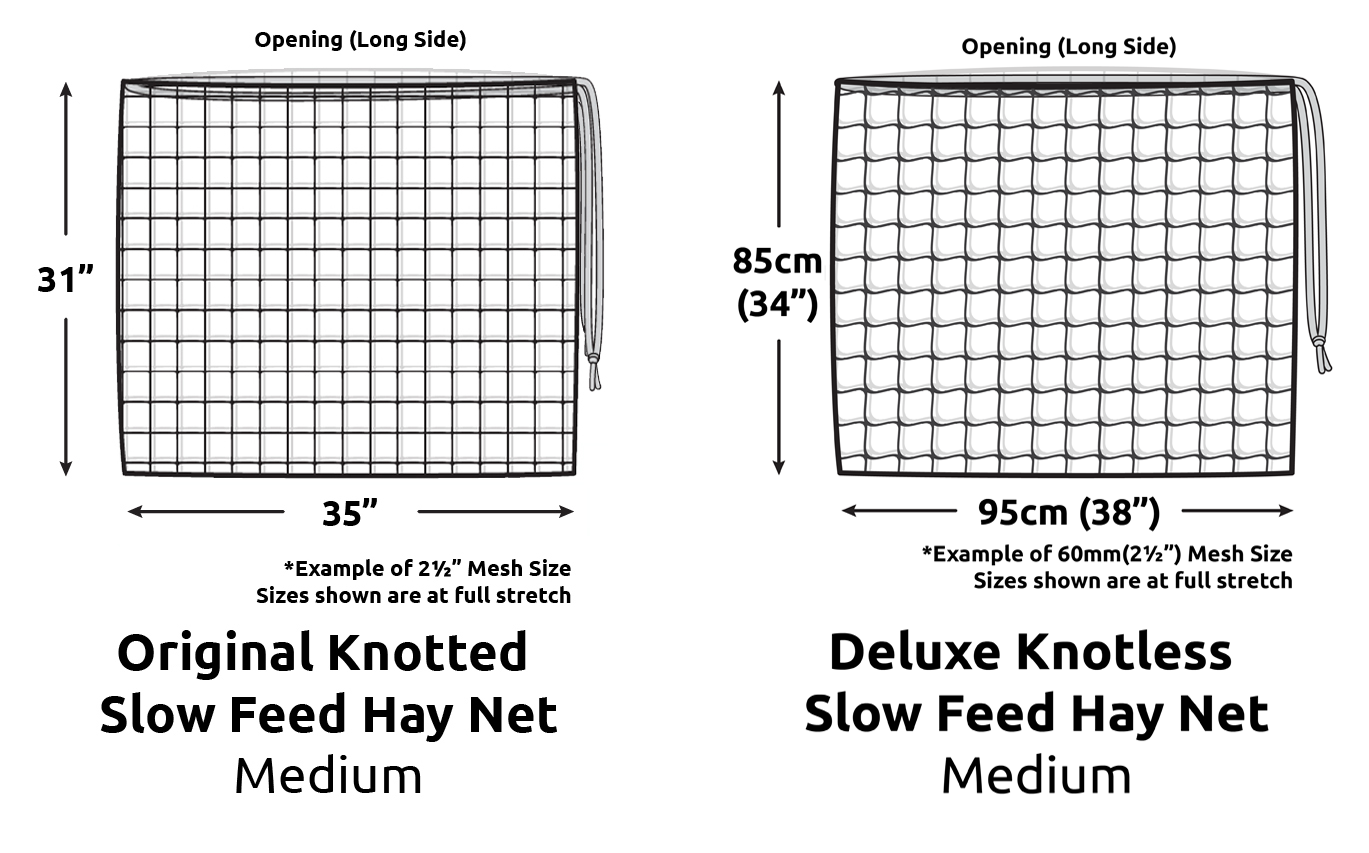 Medium - Our Medium Nets are fantastic for stables, yards and floats. They are a great overnight net and are capable of taking up to half a bale of hay or 4 -6 biscuits/ flakes or 10-12kg of hay.